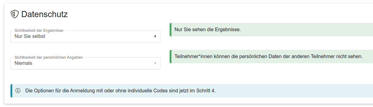 Die zweite Option legt fest wer die (optionalen!) persönlichen Angaben der Teilnehmer sehen kann.