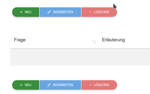 Sie können neue Fragen erstellen und vorhandene ändern oder löschen. Dazu auf „Neu“, „Bearbeiten“ oder „Löschen“ klicken.